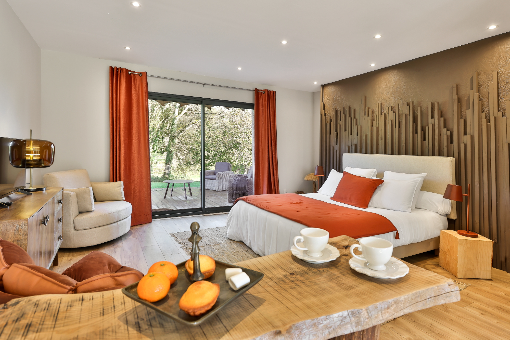 The only one room of La Mandrélie is decorated with taste and sobriety. Inside you will find an up-market king size bed, a mini-bar and an expresso machine.